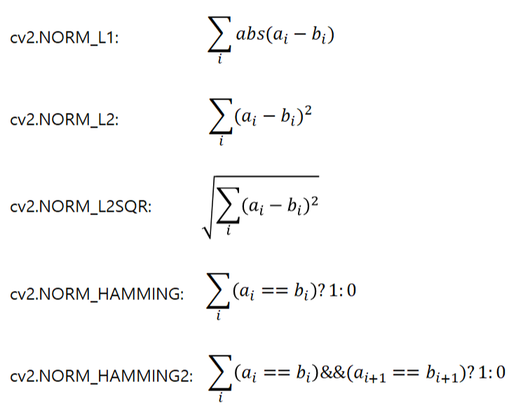 - normType : 거리 측정 알고리즘